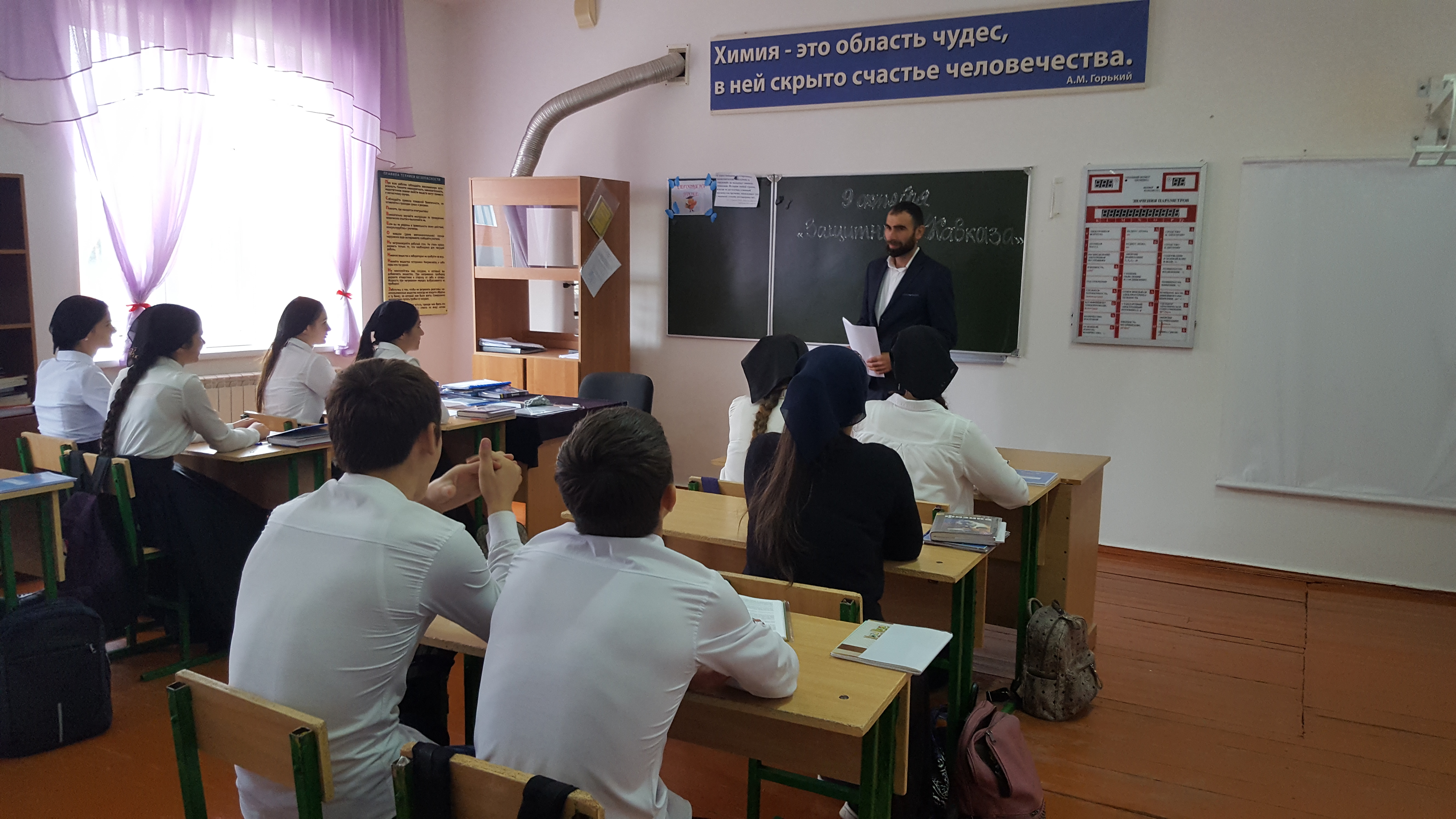 9 октября в 9-11 классах учителем истории были проведены открытые уроки по теме: «Наши земляки - защитники Кавказа», на котором учитель истории Саадуев Р.Р. рассказал учащимся о подвигах наших земляков по защите Кавказа от фашистских захватчиков.