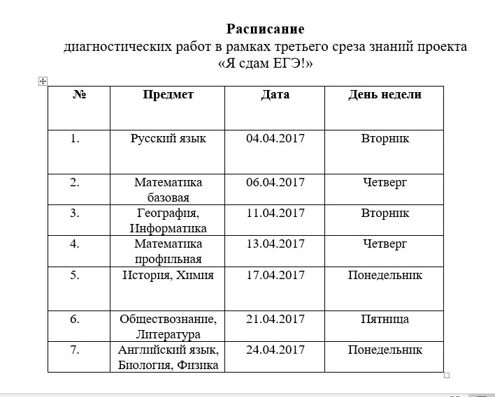 Расписание диагностических работ в рамках проекта "Я сдам ЕГЭ" (срез №3)
