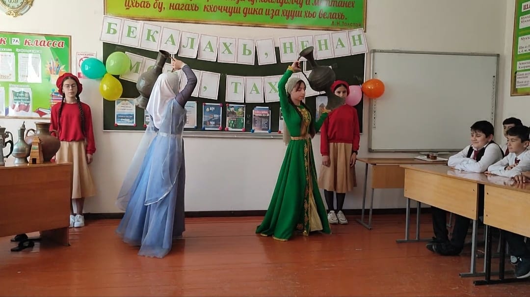 Изюминкой внеурочного мероприятия «Бекалахь, ненан мотт, тахна!» стал скромный танец «У родника» в исполнении ученицы 6 «А» класса Исрапиевой Марьям и ученицы 10 класса Абубакаровой Иман.