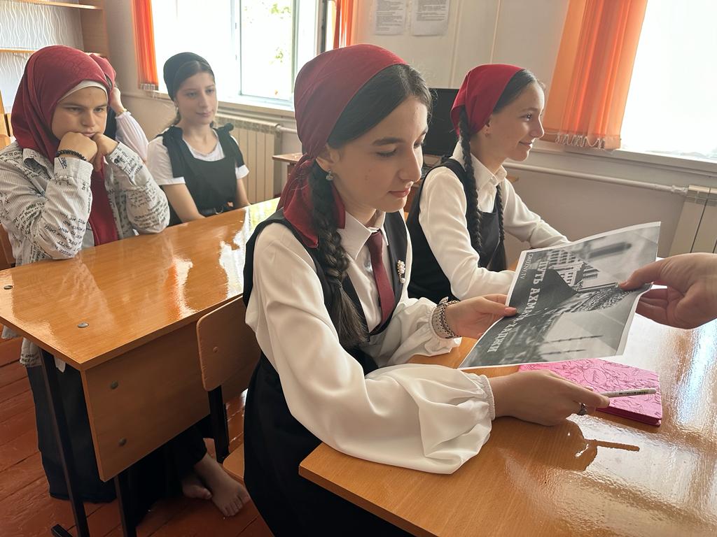 23 августа 2023г. в 8 «А» классе библиотекарем Ларсановой Л.С. был проведён урок мужества на тему «Ахмат-Хаджи Кадыров – Герой нашего времени», где учащиеся узнали много нового о первом президенте А-Х. Кадырове из книги «Путь, озарённый светом».