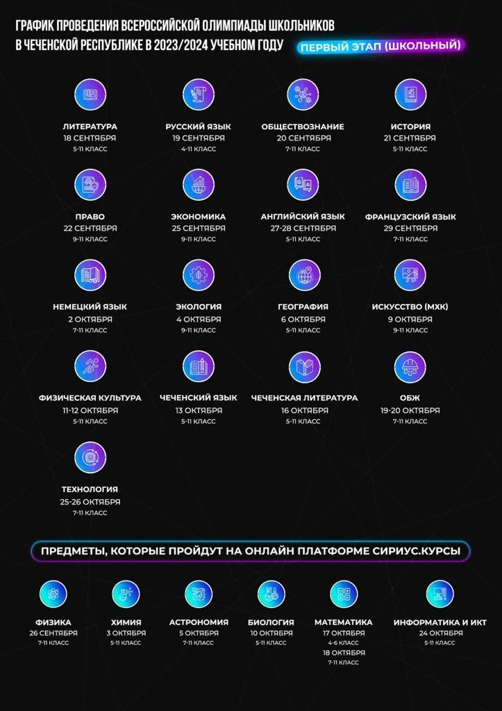 График проведения Всероссийской олимпиады школьников в Чеченской Республике в 2023-2024 учебном году.