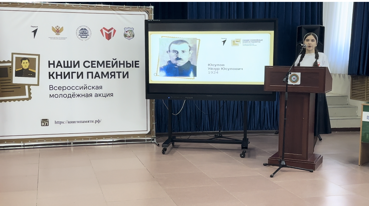 08.11.202308.11.2023г. участница Движения Первых Магомедова Карина приняла участие во Всероссийской акции «Наши семейные книги памяти». Она с гордостью рассказала историю нашего земляка, героя Великой Отечественной войны Юсупова Уйзура. Вечная память героям, отдавшим жизнь за Родину!