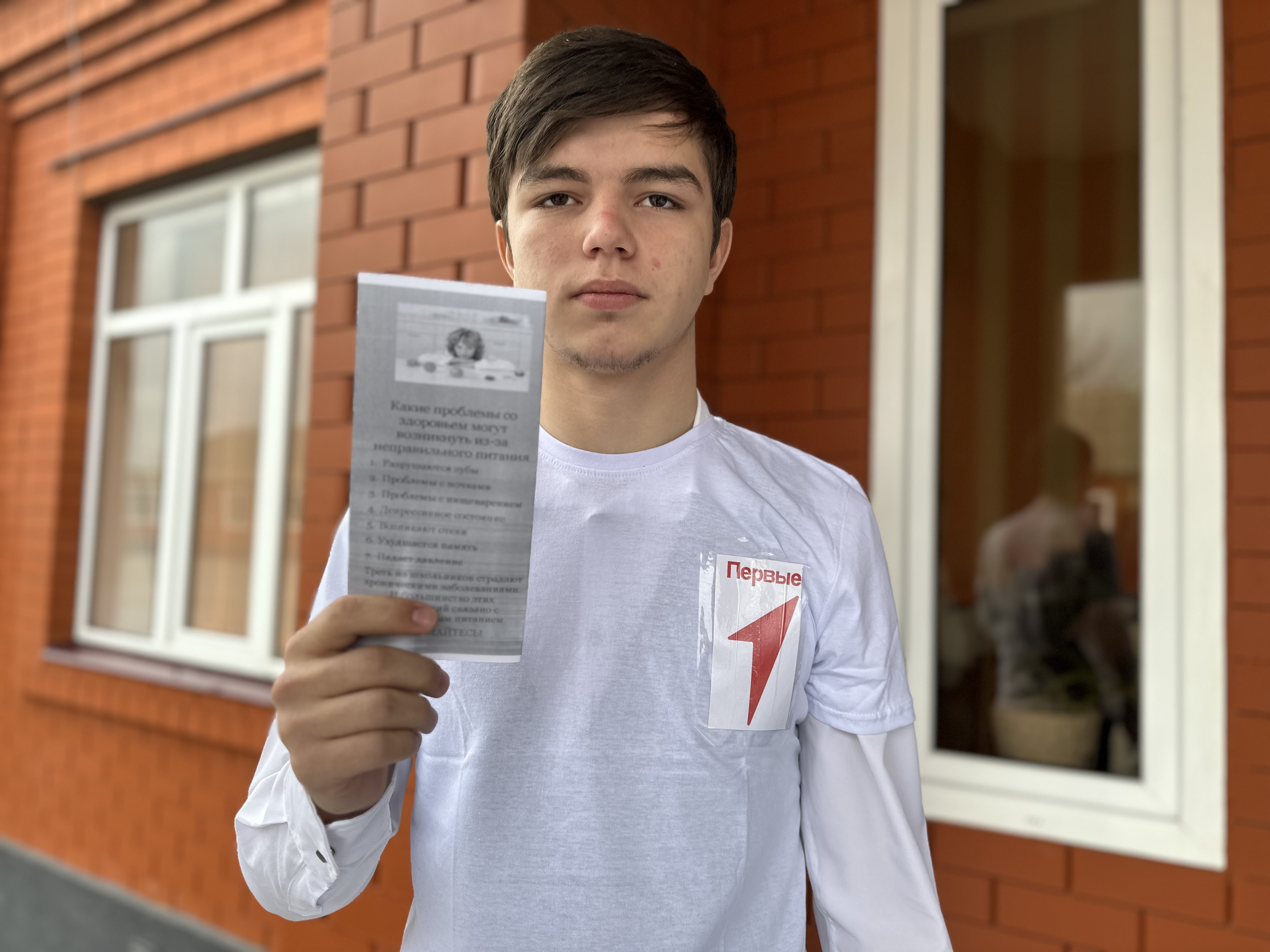 12.12.202312 декабря 2023г. участники Движения Первых МБОУ «Бильтой-Юртовская СШ» провели акцию под названием "Сохрани здоровье", целью которой было повышение осведомленности людей о важности здорового питания. Они раздавали информационные буклеты, содержащие полезные советы и рекомендации по правильному питанию.