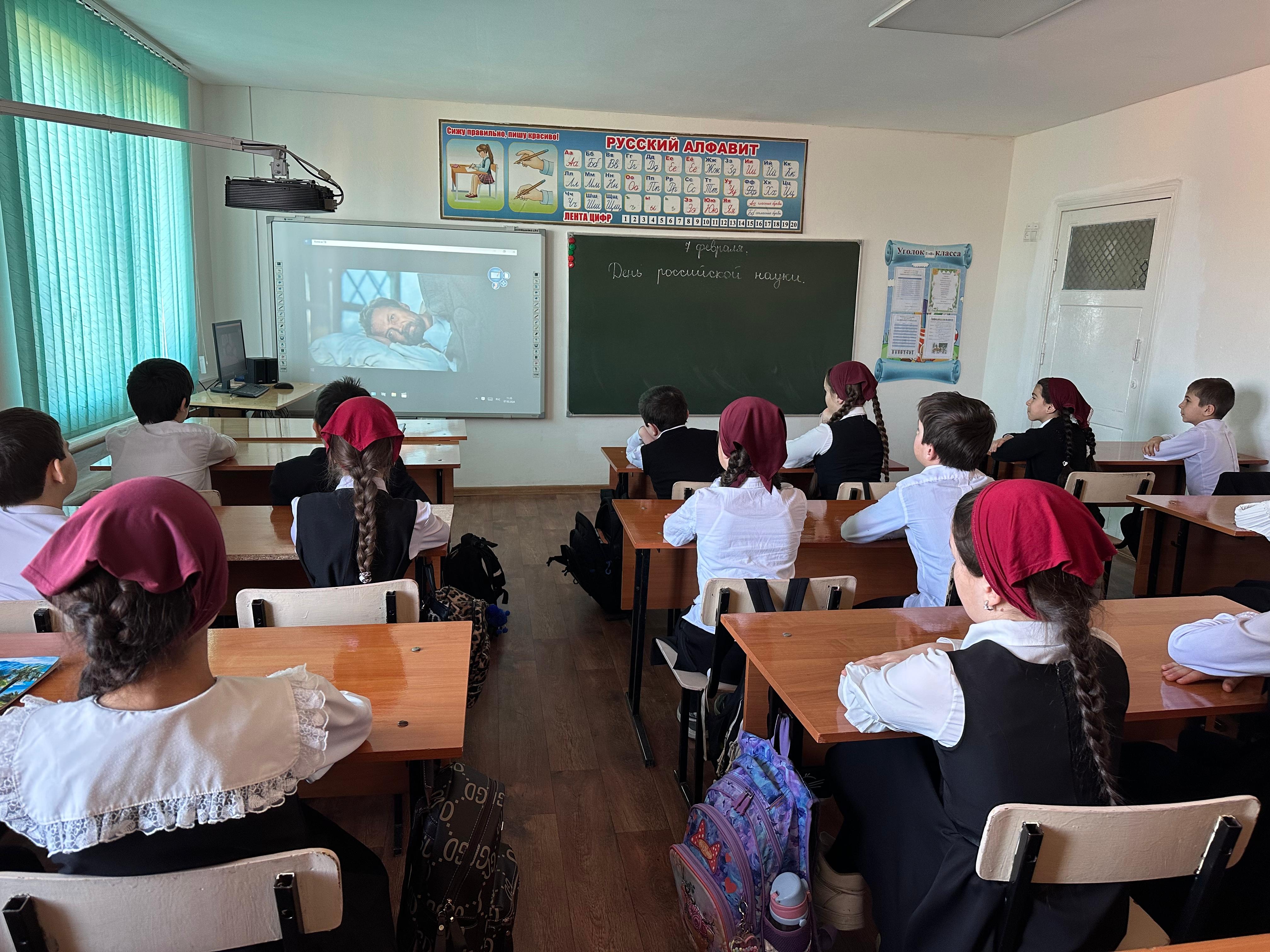 07.02.2024г. в МБОУ «Бильтой-Юртовская СШ» с учащимися 4 б класса был проведён кинолекторий "Взлёт" в честь Дня российской науки.