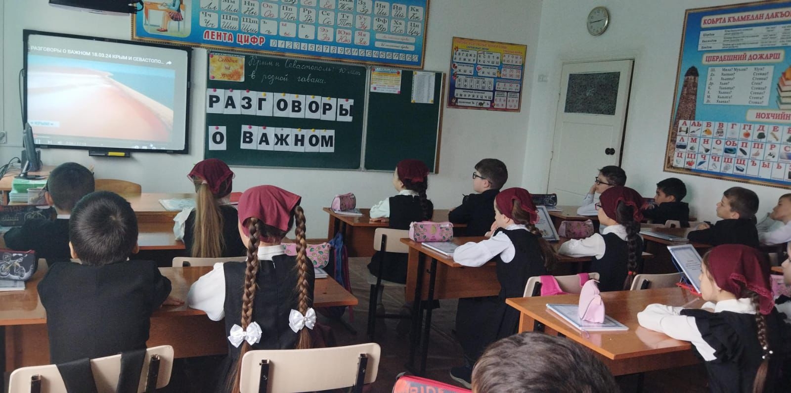 18 марта 2024 года в МБОУ «Бильтой-Юртовская СШ» во всех классах прошли Разговоры о важном, посвященные Дню воссоединения Крыма с Россией. Ученики активно обсуждали исторические события, выражали свои взгляды и чувства по этому поводу, а также обменивались мнениями о значимости этой даты для России и для каждого из них лично.