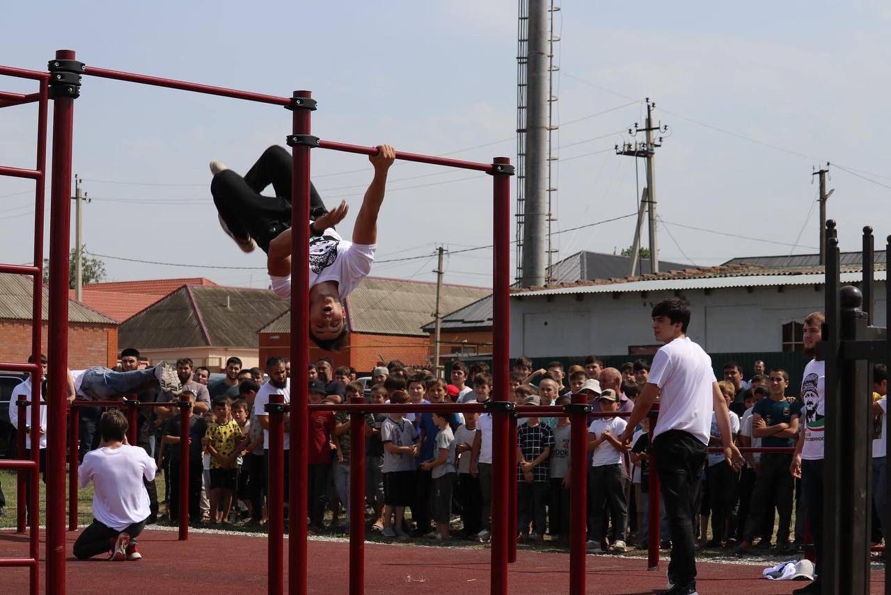 13.08.2022В с. Кошкельды Гудермесского района в рамках проекта «Спорт для всех» состоялось открытие многофункциональный уличной площадки для занятий воркаутом.