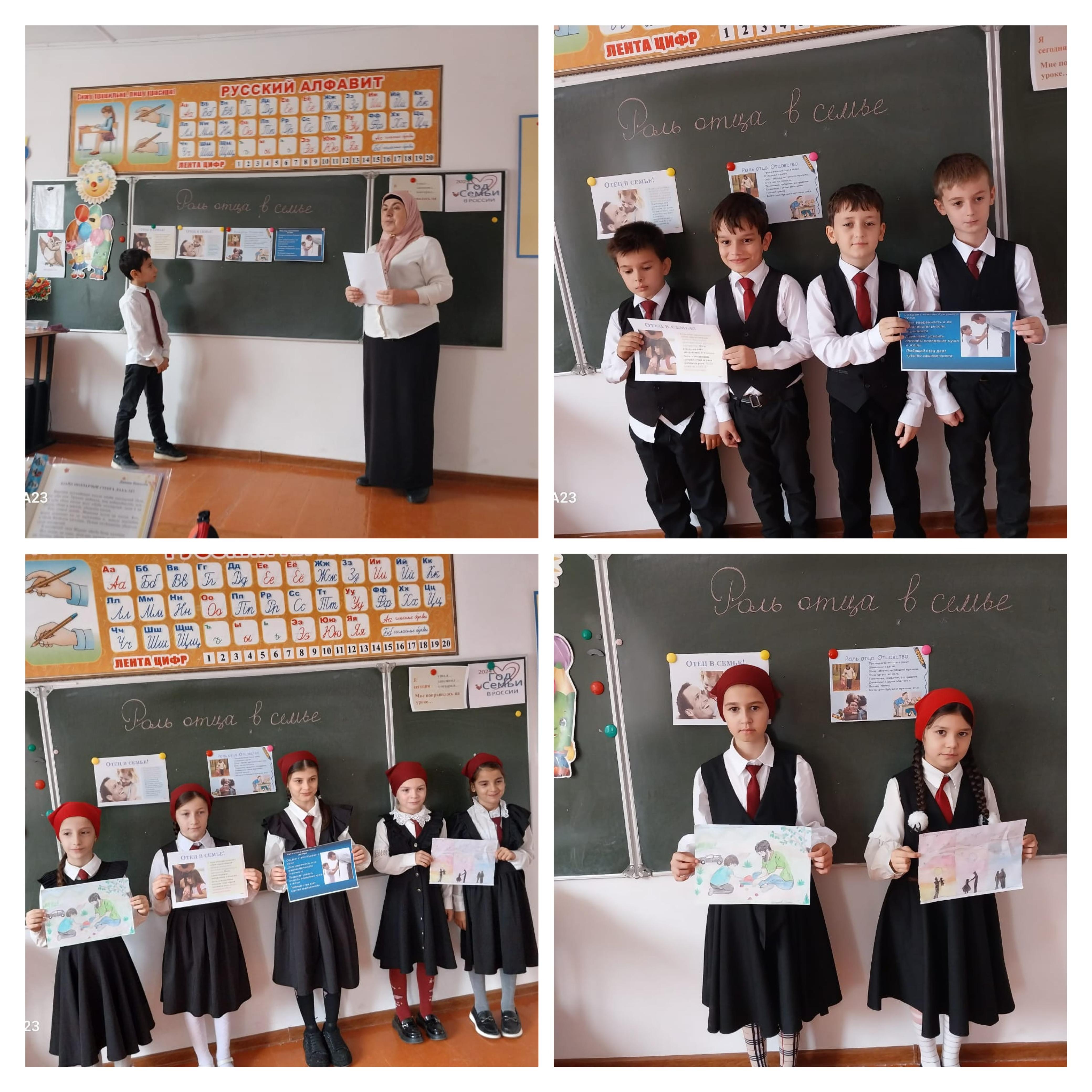 14 октября 2024 года в МБОУ «Бильтой-Юртовская СШ» учителя начальных классов провели увлекательные беседы на тему «Роль отца в семье» для учеников 1-4 классов. Эти занятия помогли детям лучше понять значение отцовской заботы, поддержки и участия в их жизни, а также обсудить, как отцы влияют на формирование характера и ценностей семьи. Учащиеся активно участвовали в обсуждениях, делясь своими мыслями и примерами из собственного опыта, что способствовало развитию уважения к родителям и укреплению семейных связей. Такие беседы способствовали формированию у детей осознания важности роли отца в их жизни и воспитании.