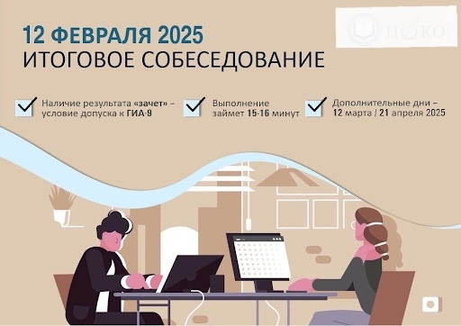 12 февраля в 9 утра состоится итоговое собеседование по русскому языку для учащихся 9-х классов. На собеседовании будут проверяться знания и навыки учеников, а также оцениваться их способности владения русским языком. Будьте готовы к демонстрации своих знаний и умений!