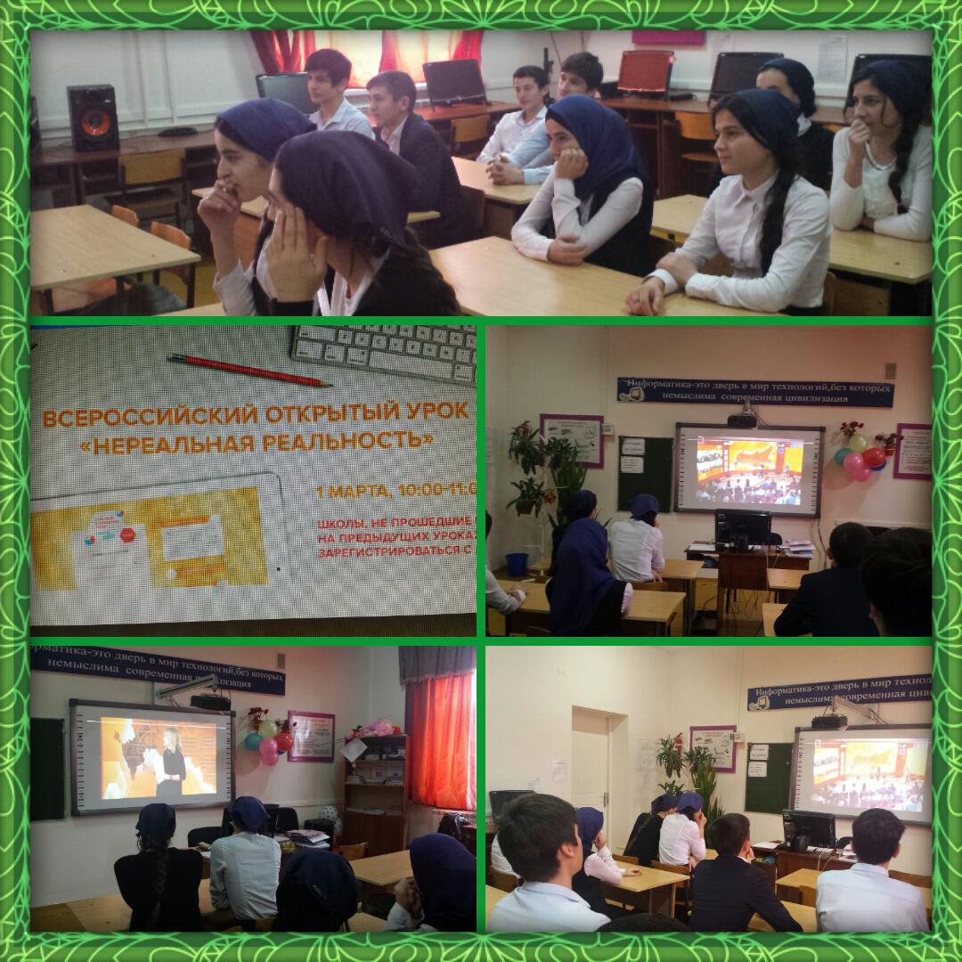 01.03.2018Сегодня, 1 марта 2018г., учащиееся 10 класса МБОУ "Бильтой-Юртовская СШ" приняли участие во Всероссийском открытом уроке "Нереальная реальность" в режиме интернет-трансляции на портале "ПроеКТОриЯ".