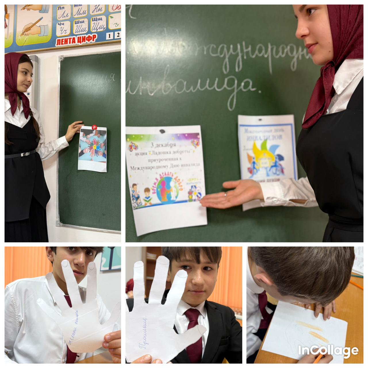 4 декабря 2025г., в рамках празднования Дня инвалида, под руководством классного руководителя Нуцулхановой Миланы был проведен классный час на тему «Дарите людям добро», на котором ребята обсуждали важность проявления доброты и помощи людям с ограниченными возможностями, а также делали выводы о необходимости проявлять терпение и заботу в отношении окружающих.