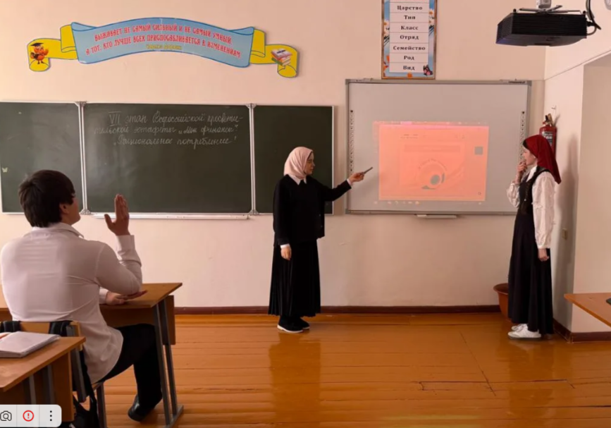 10.02.2026В рамках VII этапа Всероссйской Эстафеты «Мои финансы» и в целях обеспечения перехода от финансовой грамотности к финансовой культуре: повышения интереса экономически активных учащихся к тематикам по финансовой грамотности, мотивации их к повышению своего уровня знаний и рационализации поведения в МБОУ «Бильтой-Юртовская СШ» среди учащихся 10-11 классов были проведены мероприятия по теме: «Рациональное потребление». Мероприятия Эстафеты были нацелены на информирование у учащихся об экологичности и социальной ответственности рационального потребления, о прямой финансовой выгоде (экономии денег) и вкладе в сохранение ресурсов планеты от сокращения ненужных покупок отказе от одноразовых вещей, сдаче одежды в секонд-хенд и сортировке мусора.