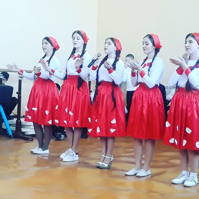 В военно-спортивном конкурсе «А ну-ка, парни!» в музыкальных паузах выступили и наши девочки с инсценированной песней «Катюша».