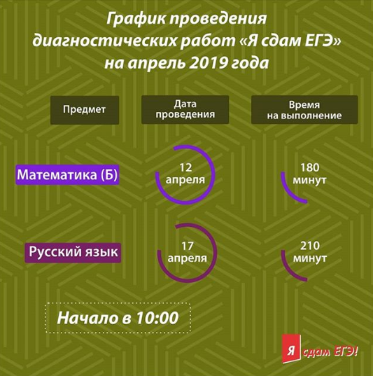 График проведения диагностических работ по русскому языку и базовой математике в рамках проекта «Я сдам ЕГЭ».